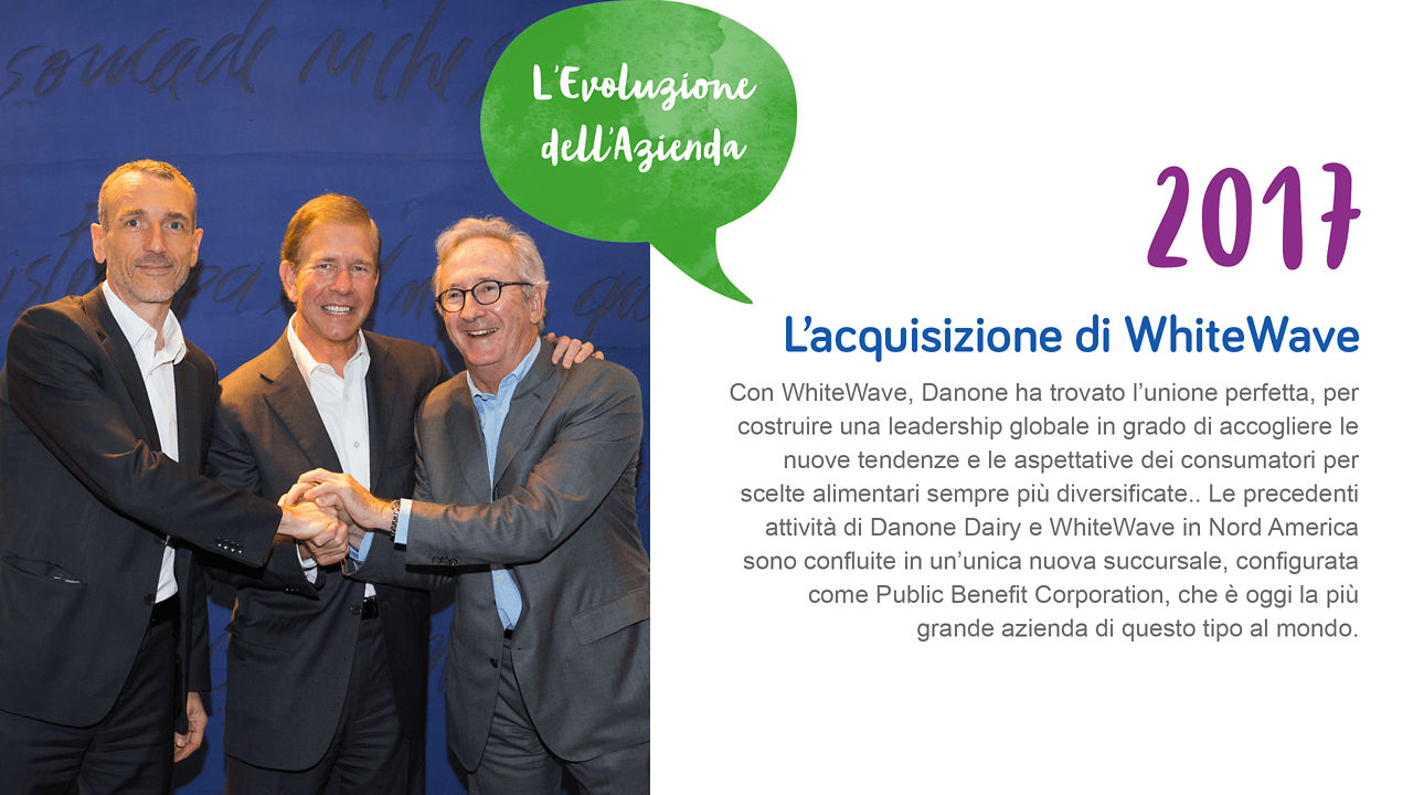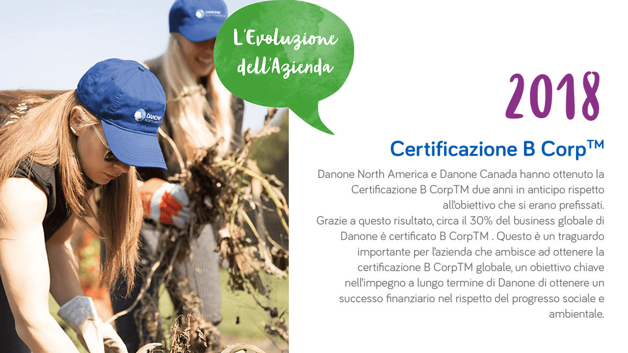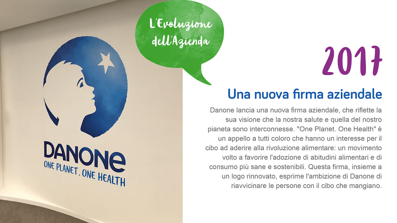Nel 2017 abbiamo così lanciato la nuova vision con la firma: Danone, One Planet. One Health.
