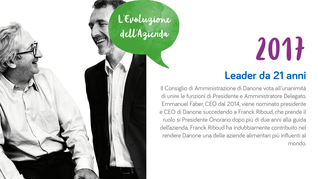 Il suo successore Emmanuel Faber, che ha assunto la carica di CEO di Danone nel 2014, ha lanciato il Manifesto di Danone - che delinea la volontà di Danone di esser parte di una vera e propria rivoluzione alimentare.