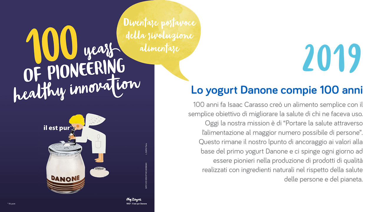 Scopri tutte le tappe che hanno portato Danone a essere l'azienda di oggi.