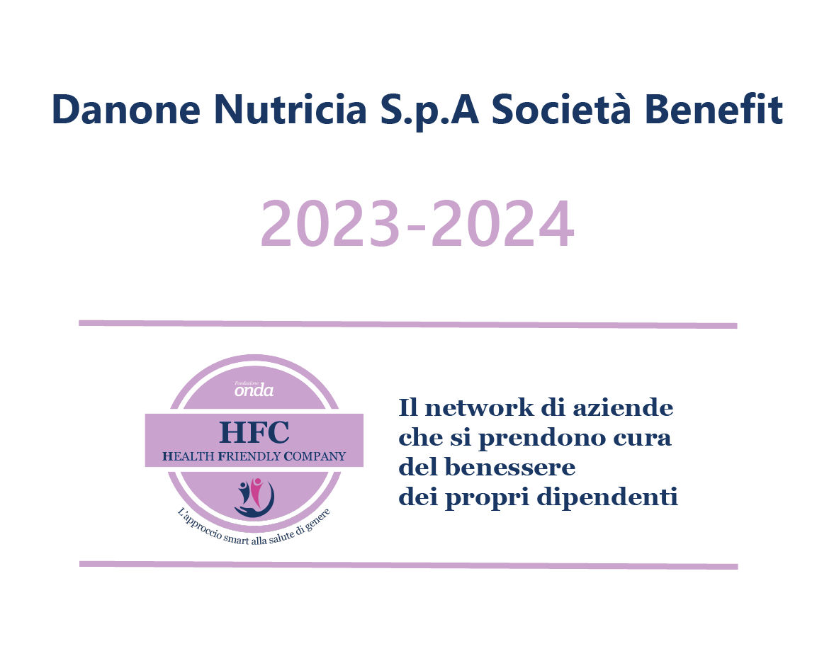 Fondazione Onda (Osservatorio nazionale sulla salute della donna e di genere) ha assegnato per la prima volta il riconoscimento Health Friendly Company e Danone è tra le prime 21 aziende ad averlo ricevuto. Il nuovo Bollino HFC certifica l’impegno nella tutela della salute e del benessere delle persone che lavorano in azienda. Questo nuovo progetto di Onda offre un riconoscimento biennale alle realtà che hanno dimostrato di avere a cuore il benessere psichico e fisico delle donne, manifestando la volontà di affiancarle nel processo di informazione e sensibilizzazione in merito a salute della donna, prevenzione primaria e salute mentale.