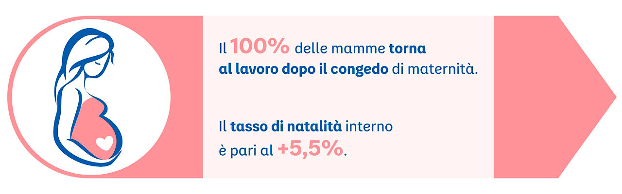 Inoltre, un canale di comunicazione con l'azienda rimane sempre aperto, anche durante il congedo, per tenere la neomamma aggiornata su novità e nuovi progetti.
